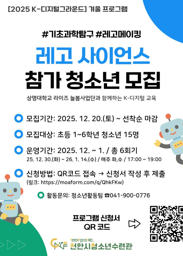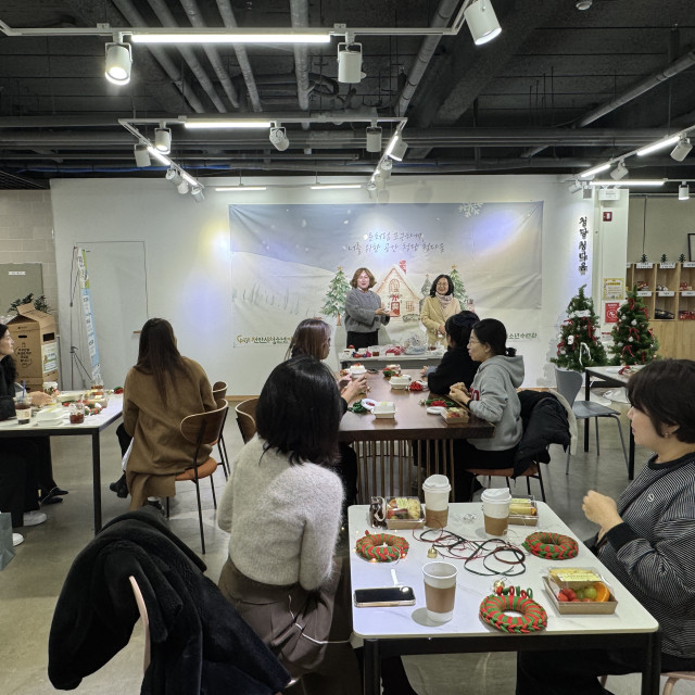 [가온초등학교 학부모회 '가온누리']청당 청다움에서 가온초 학부모회 프로그램으로청소년자유공간 청당 청다움을 대관하여양말목을 활용한 크리스마스 리스 만들기 프로그램을 운영하였습니다.본 활동은 일상 재료를 활용한 체험을 통해자원순환의 의미를 되새기고, 연말의 따뜻한 정서를 나누는뜻깊은 시간이 되었습니다.또한 가온초등학교 교장선생님과 천안시청소년수련관 관장님께서현장을 방문하시어 격려의 인사말씀을 전해주셔서프로그램의 의미를 더해주셨습니다.청당 청다움은 앞으로도 지역사회와 연계한다양한 프로그램 운영을 통해열린 청소년자유공간으로서의 역할을 지속해 나가겠습니다.