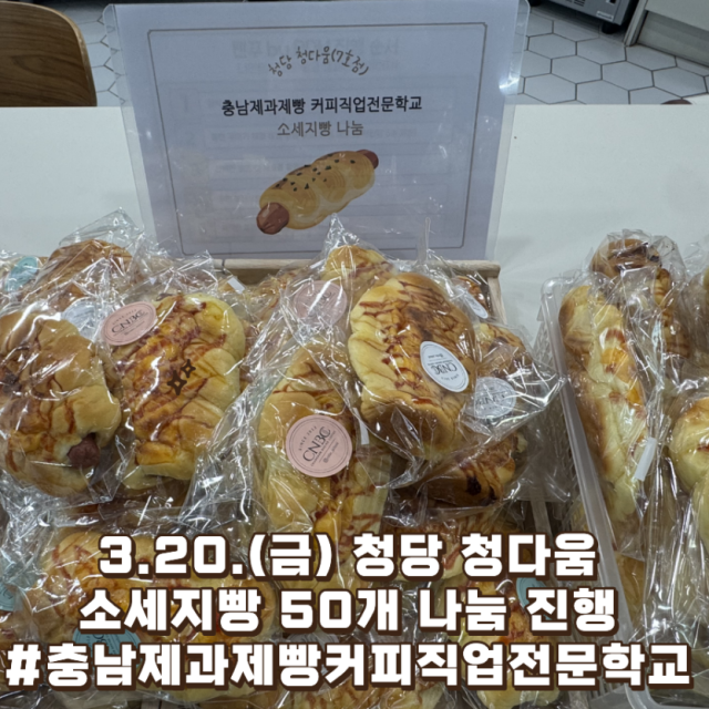 충남제과제빵커피직업전문학교의 따뜻한 나눔으로 청당청다움이 더욱 풍성해졌습니다 정성껏 준비해주신 소세지빵 간식을 통해 청소년들에게 즐거운 휴식과 행복한 에너지를 전달할 수 있었어요!지역사회와 함께하는 나눔 실천에 깊이 감사드리며, 앞으로도 청소년들을 위한 따뜻한 연계와 협력이 이어지길 기대합니다 감사합니다#천안시청소년재단 #천안시청소년수련관 #청당청다움 #충남제과제빵커피직업전문학교