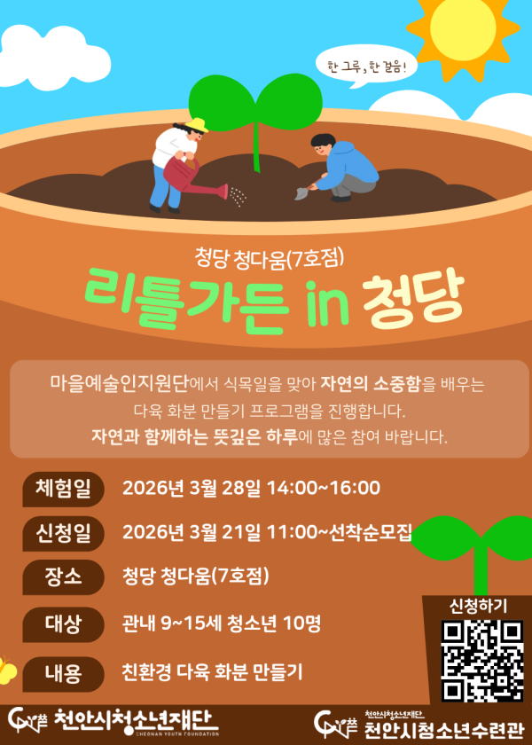 [2026 원해? 원예!] 나만의 테라리움 만들기 손안에 담은 작은 자연 오늘은 테라리움에 대해 배우고 직접 나만의 테라리움을 만들어보는 시간을 가졌습니다!#원해원예 #베이킹 #원예#화분케이크 #테라리움 #꽃다발 #플라워박스#늘쿠킹스튜디오 #로랑로즈플레르 #천안시청소년재단#천안시청소년수련관