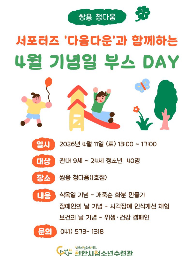 공지 [쌍용 청다움(1호점)] 서포터즈와 함께하는 4월 기념일 부스 DAY!
