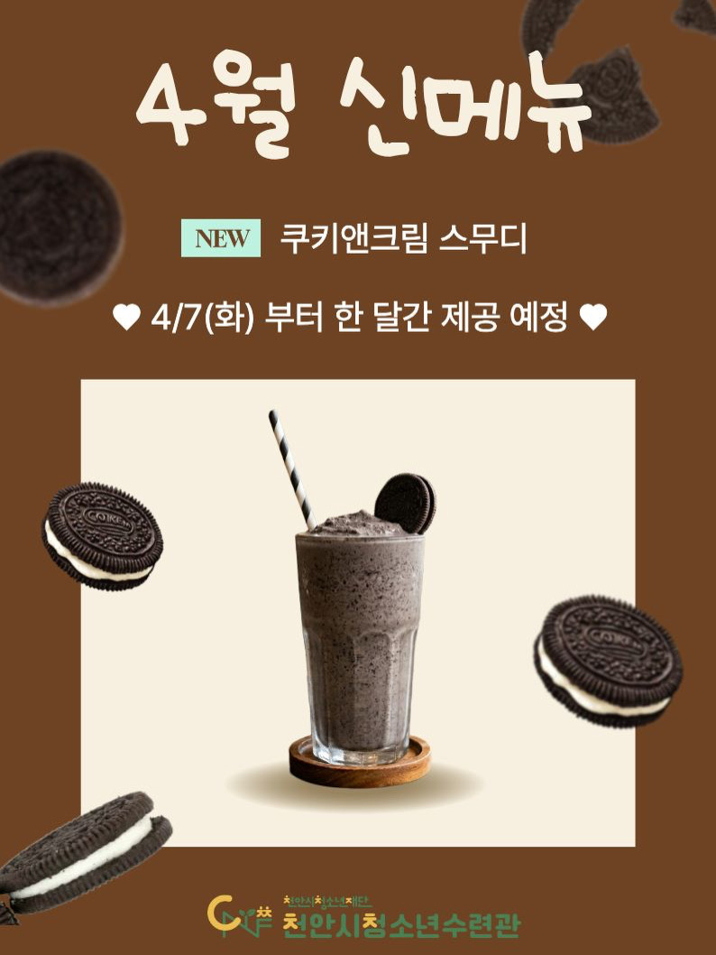공지 [쌍용 청다움(1호점)] 4월 달콤한 쿠앤크 스무디 신메뉴 출시