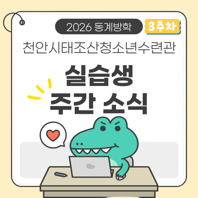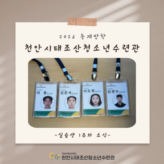 [2026. 2. 19.] 2026년 동계방학 대학생현장전공실습(2차) 천안시청소년재단 기…