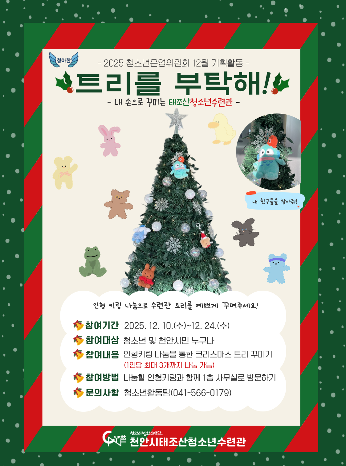 - 참여내용: 인형 키링 나눔을 통한 크리스마스 트리 꾸미기