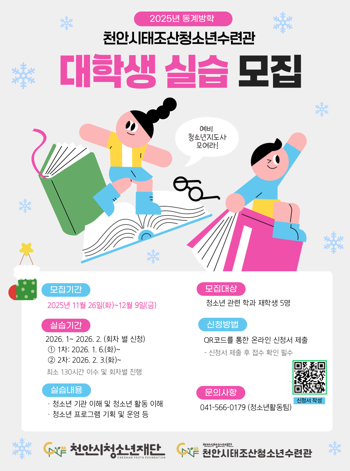 천안시태조산청소년수련관 동계방학 대학생현장전공실습생을 모집합니다!