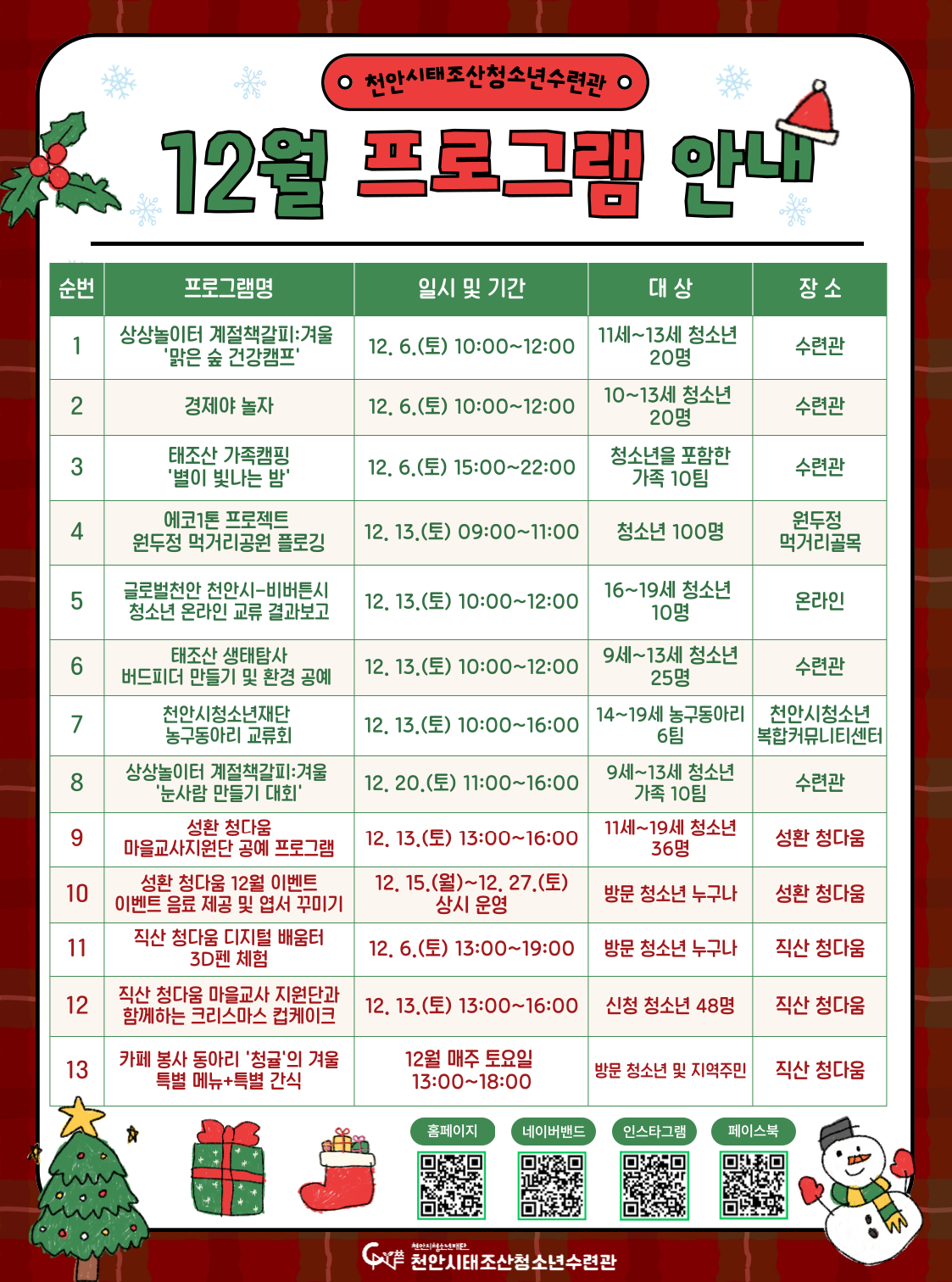 올해를 마무리하며 태조산청소년수련관이 12월에도 여러분을 찾아갑니다:)