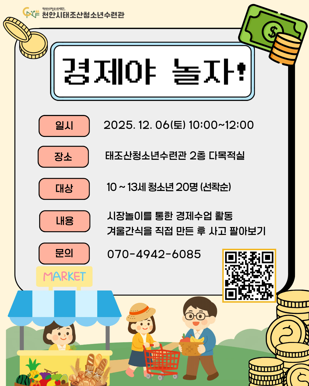 아이들이 직접 시장놀이를 체험하며 돈의 흐름과 합리적 소비를 자연스럽게 배워보는 시간!