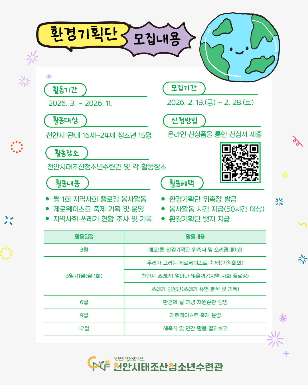 - 문의사항: 041-566-0179(청소년활동팀)