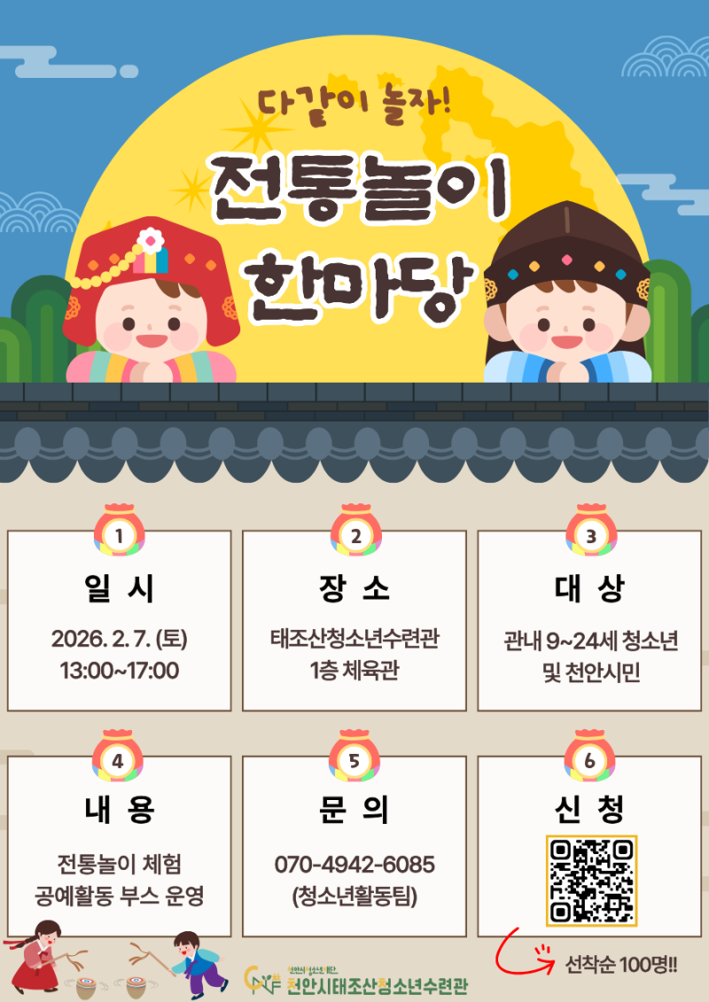 - 대 상: 관내 9~24세 청소년 및 천안시민 100명(선착순)