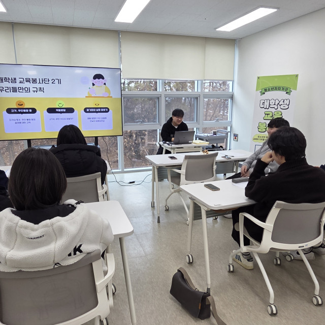 [대학생 교육봉사단 2기] 2월 정기회의대학생 교육봉사단 2기의 시작을 알리는 첫 만남으로2월 정기회의를 진행하였습니다서로 친해지는 시간과 함께 교육 멘토로서 교육의 가치에 대해 의견을 나누고, 앞으로 함께할 활동 일정도 공유했습니다또한 규칙을 정하며 보다 주체적인 자치기구로 나아가기 위한 첫 단계를 밟았는데요! 앞으로 청소년들과 함께 성장할 대학생 교육봉사단의 활동을 기대해주세요