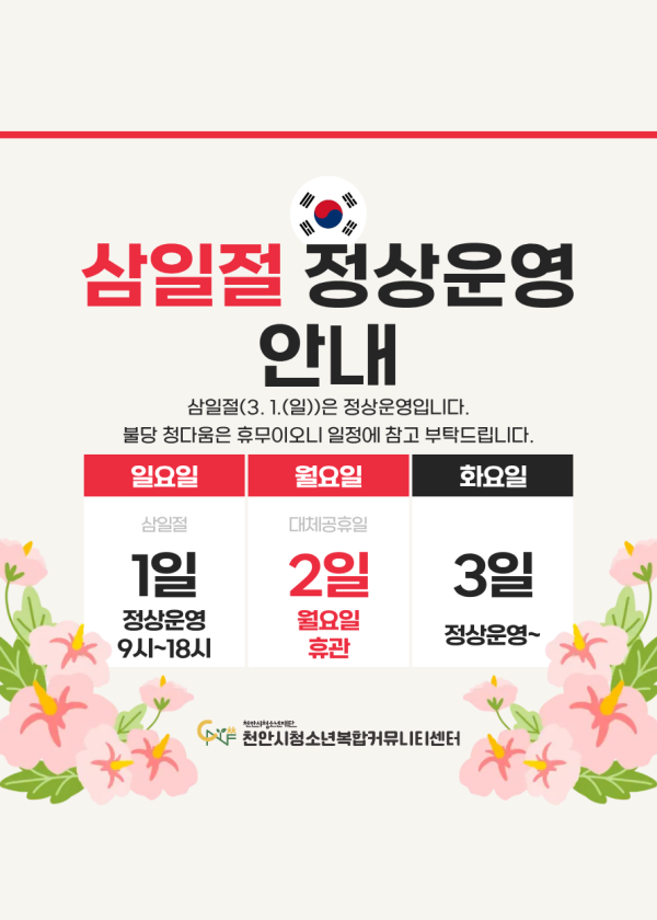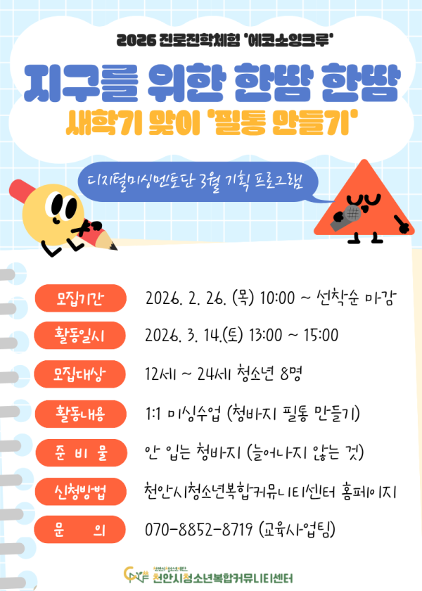 충청남도교육청학생교육문화원 명노병 원장님께서천안시청소년복합커뮤니티센터를 방문해 주셨습니다이번 방문에서는 센터의 주요 시설과 운영 프로그램을 함께 둘러보고, 청소년의 문화·예술 활동을 중심으로 한 교육 협력 방안에 대해 의미 있는 이야기를 나누는 뜻깊은 시간이 마련되었습니다.앞으로 지역 청소년들의 문화예술 교육을 함께 지원하는 든든한 동반자로서 지속적인 협력이 이어지기를 기대합니다!방문해 주셔서 감사드립니다!