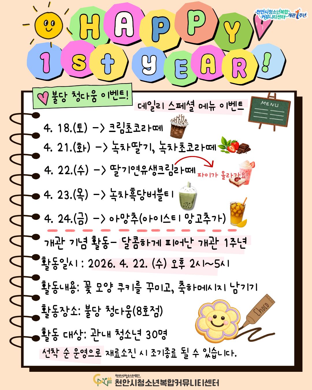[불당 청다움(8호점) 달콤하게 피어난 개관 1주년 안내 ]