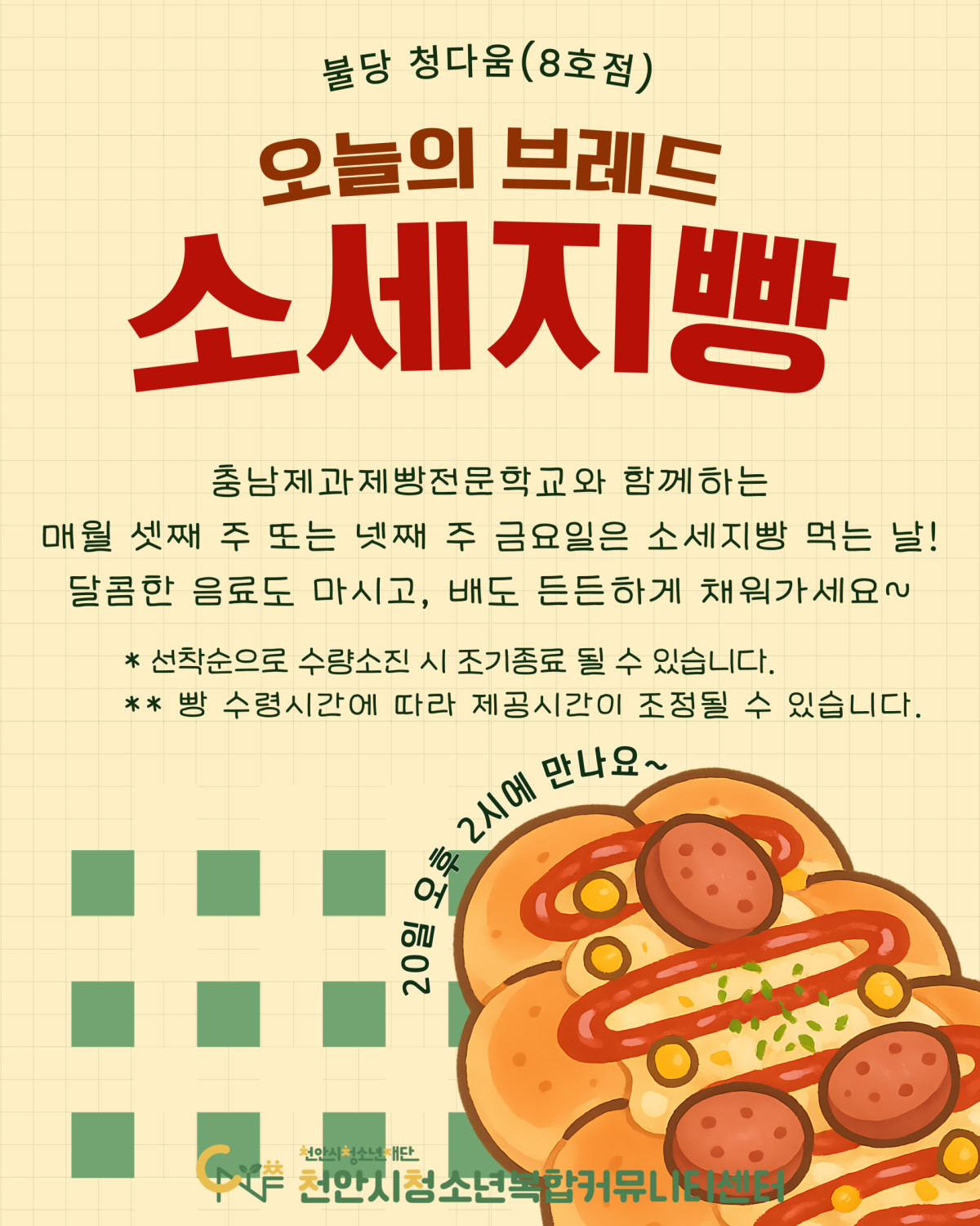 청다움에서 소세지빵 먹는 날이에요!