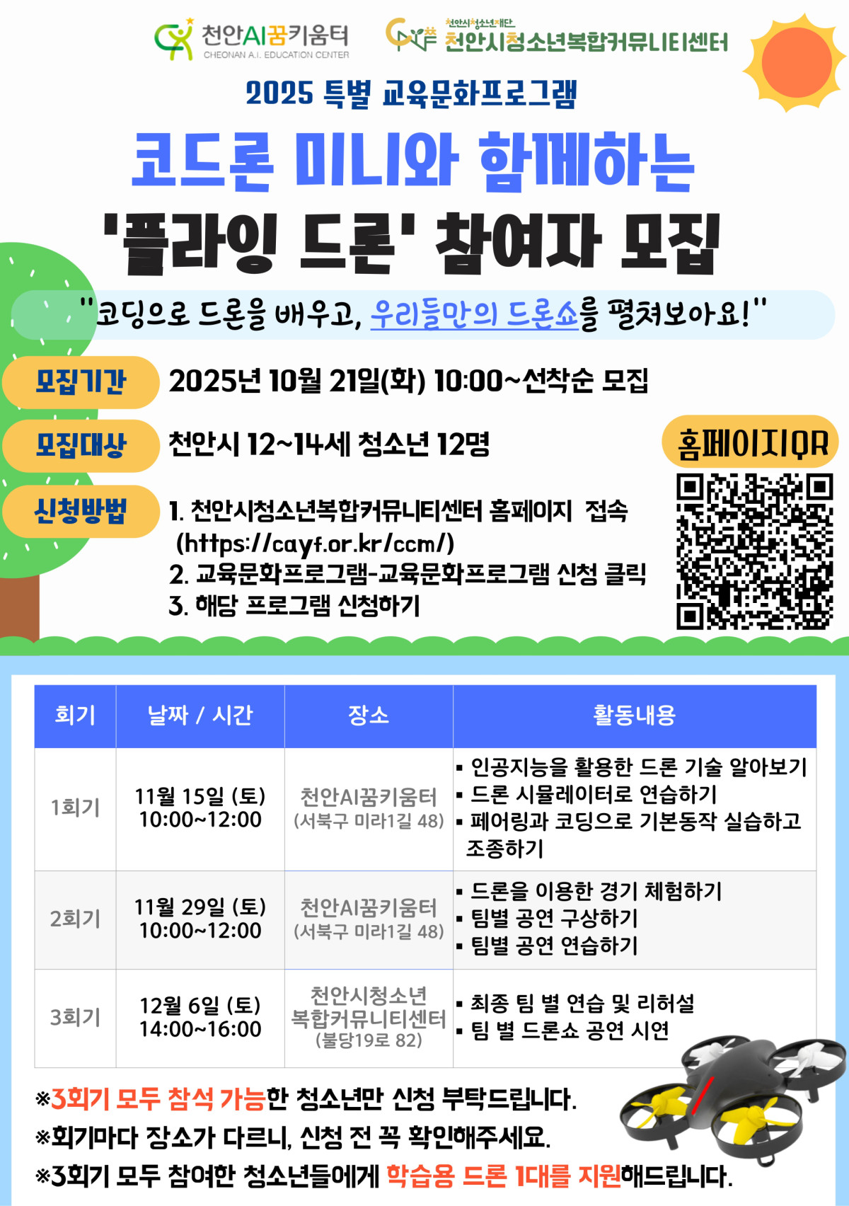 2025 교육문화 특별 프로그램 '코드론 미니와 함께하는 플라잉 드론' 참여자 모집