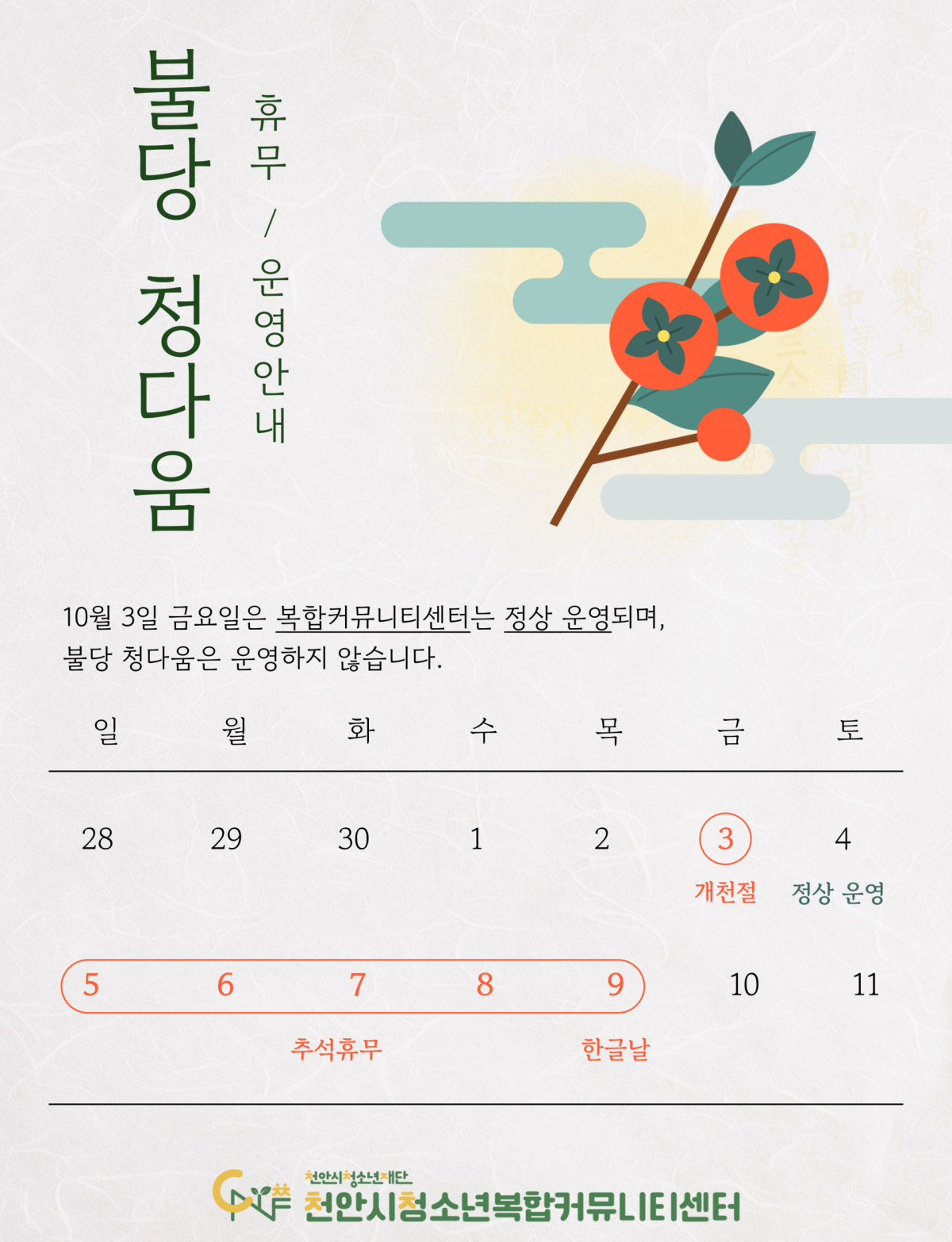 한 번 더 불당 청다움 휴무를 안내드립니다