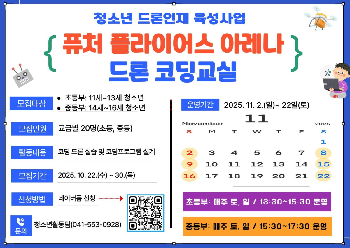 안녕하세요! 청소년 드론인재 육성사업 '퓨처 플라이어스 아레나' 드론 코딩교실에서 드론과 코딩에 대한 꿈을 키울 멋진 청소년들을 모집합니다. ????????