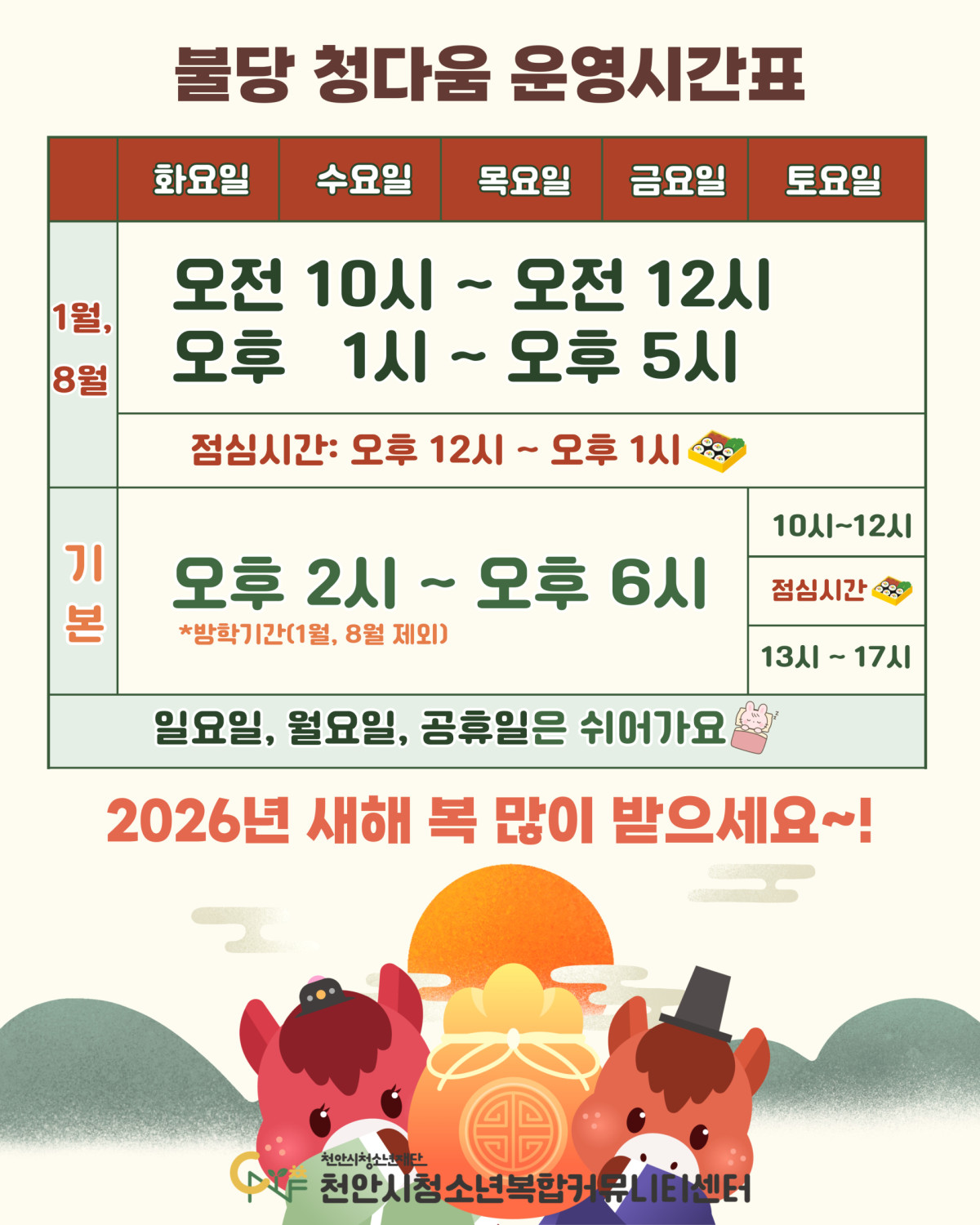[불당 청다움(8호점) 2026년 1월 운영시간 안내]