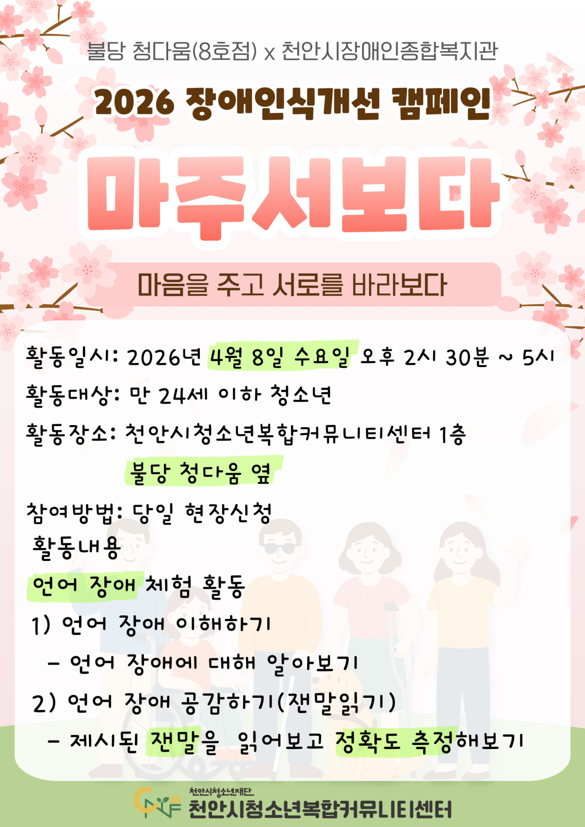 [불당 청다움(8호점) x 천안시장애인종합복지관 4월 장애인식개선활동- 마주서보다]