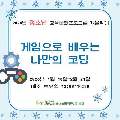 [게임으로 배우는 나만의 코딩] 2026년 청소년 교육문화프로그램 겨울학기