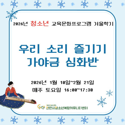 [우리 소리 즐기기, 가야금 기초반] 2026년 청소년 교육문화프로그램 겨울학기