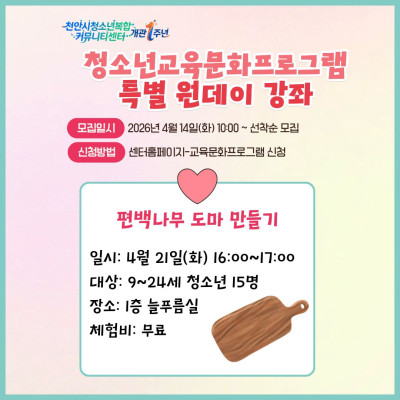 [나무 도마 만들기] 개관 1주년 기념 원데이 강좌 N새글