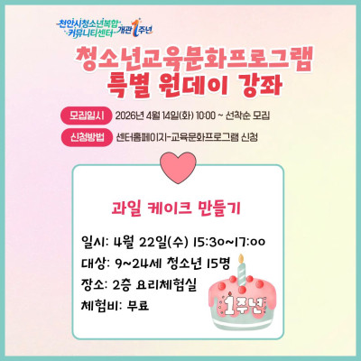 [과일 케이크 만들기] 개관 1주년 기념 원데이 강좌 N새글