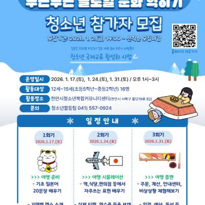 신청대상 천안시 9~16세 청소년