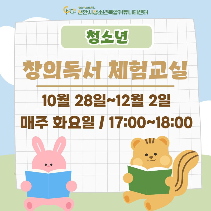 모집중 [창의 독서 체험 교실] 청소년 교육문화프로그램