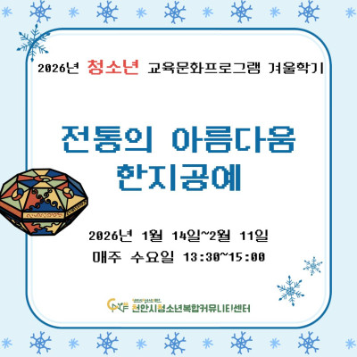 [전통의 아름다움, 한지공예] 2026년 청소년 교육문화프로그램 겨울학기