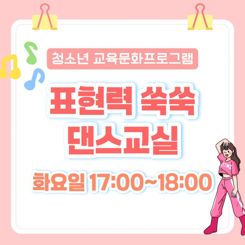 모집중 [청소년 교육문화프로그램] 표현력 쑥쑥 댄스교실