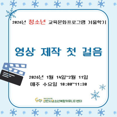 [영상제작 첫걸음] 2026년 청소년 교육문화프로그램 겨울학기