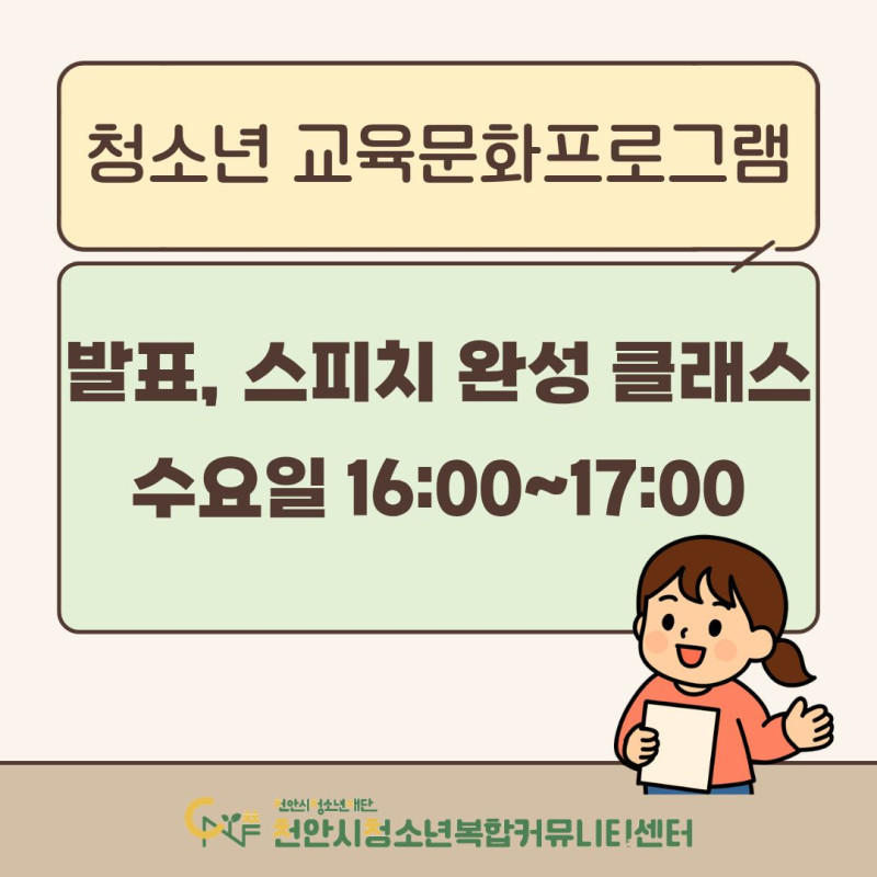 모집종료 [발표, 스피치 완성 클래스] 2026년 3~4월 청소년 교육문화프로그램
