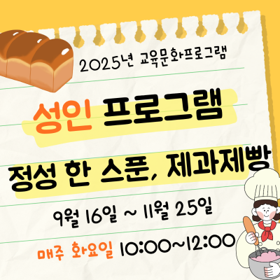 [정성 한 스푼, 제과제빵] 9-11월 성인 교육문화프로그램