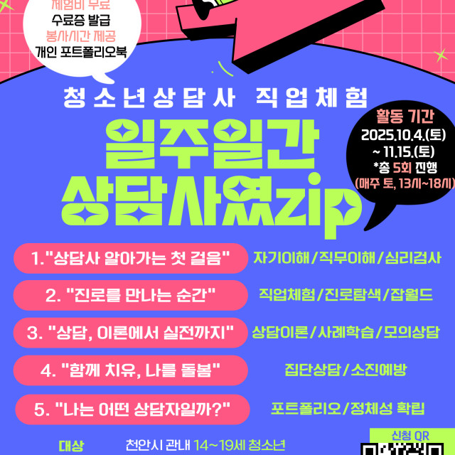 [청소년상담사 직업체험 프로그램 ⌜일주일간 상담사였.zip⌟ 참가자 모집