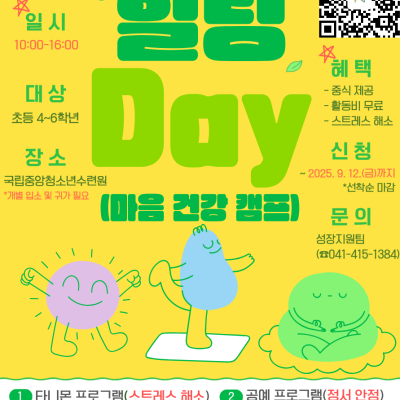 국립중앙청소년수련원과 함께하는 마음 건강 캠프 ⌈힐링 Day⌋