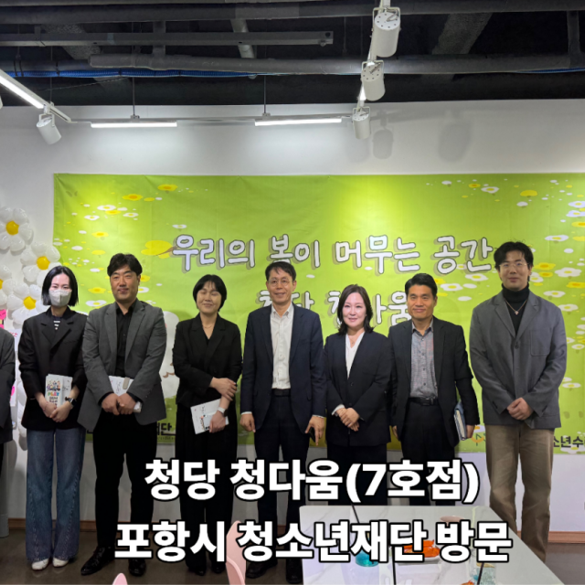 청당 청다움에 반가운 발걸음이 이어졌습니다 ????포항시청소년재단 관계자분들께서 방문해주셔서청당 청다움의 공간과 운영 사례를함께 나누는 뜻깊은 시간을 가졌습니다.청소년이 주인인 공간의 가치를 함께 공감하며,서로 배우고 성장하는 의미 있는 시간이었습니다 ????멀리서 찾아와주셔서 감사드리며,앞으로도 지속적인 교류가 이어지길 기대합니다.