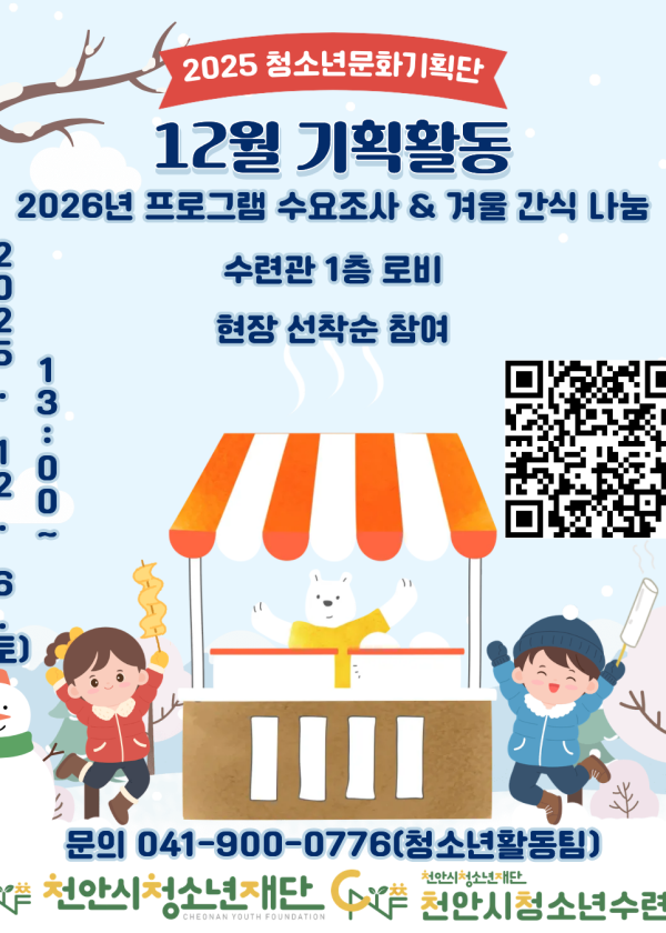 [ 쌍용 청다움 1호점 11월, 12월 신메뉴 너의 음료를 알려줘! ]#천안시청소년재단#대표이사_한상경#청소년수련관#쌍용청다움(1호점)#기관장_정화진쌍용 청다움에서 11월 ~ 12월 신메뉴 투표를 받고 있어요~마시고 싶은 신메뉴 음료를 포스트잇에 적어주면 여러분이 제안한 음료들 중 투표를 통해 선정된 음료가11월, 12월의 신메뉴로 제공됩니다!과연 이번엔 어떤 음료가 청소년 친구들에게 인기가 많을지 청다움도 궁금한데요~청소년 여러분의 많은 참여 부탁해요!#천안시청소년재단#천안청소년수련관#천안시태조산청소년수련관#천안시청소년복합커뮤니티센터#천안시성정청소년문화의집#천안시청소년상담복지센터#천안시학교밖청소년지원센터