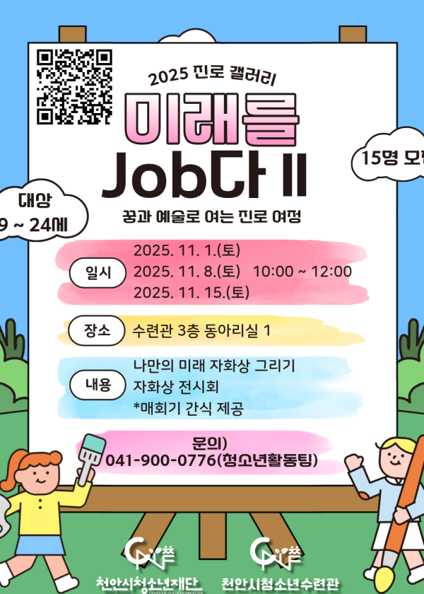 ???? [미래를 Job다1] 3회기 운영 ???? #천안시청소년재단#대표이사_한상경#천안시청소년수련관#기관장_정화진 진로 탐색 프로그램 **‘미래를 Job다1’**이 드디어 마지막 3회기를 맞이했습니다! ✨ 오늘은 ‘나만의 진로 작품 만들기’ 시간으로청소년들이 버킷리스트 키링을 직접 디자인하며자신의 꿈과 목표를 시각적으로 표현해보는 활동을 진행했습니다 ???????? 나의 미래를 구체적으로 떠올리고, 이루고 싶은 목표를 담아세상에 단 하나뿐인 키링을 완성했어요 ???????? 진로에 대한 생각을 정리하고, 스스로의 가능성을 확인하는 뜻깊은 시간이었습니다 ????앞으로도 청소년들의 꿈을 응원합니다! ???? #미래를Job다 #버킷리스트슈링클스#천안시청소년재단#천안시청소년수련관#천안시태조산청소년수련관#천안시청소년복합커뮤니티센터#천안시성정청소년문화의집#천안시청소년상담복지센터#천안시청소년학교밖지원센터