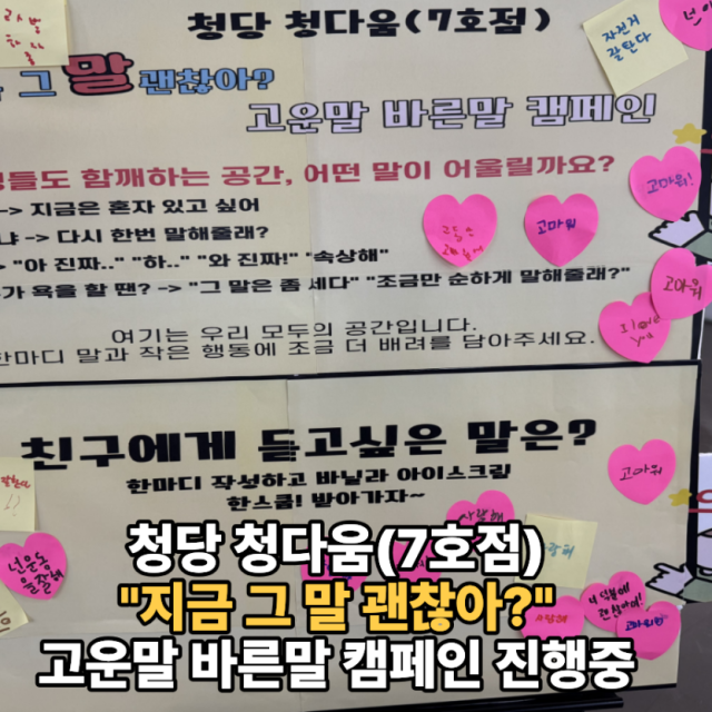 [청당 청다움(7호점)] "지금 그 말, 괜찮아?" 고운말 바른말 캠페인 진행