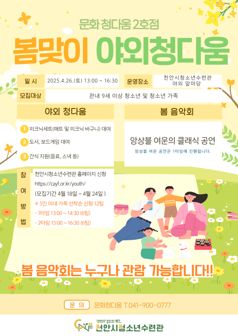| 장소 | 천안시청소년수련관 야외 잔디광장 |