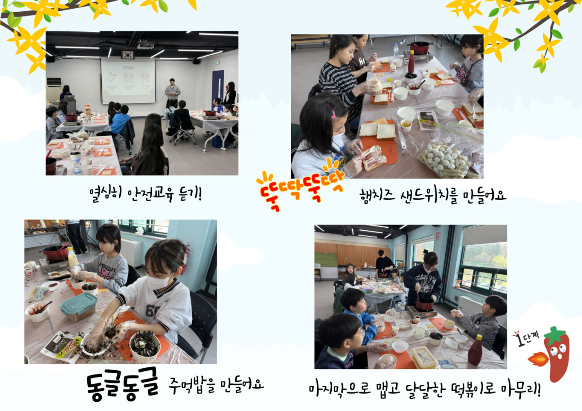안전 교육도 경청하고, 고사리 같은 손으로 정성을 다해 만든 오늘의 메뉴는 바로...!