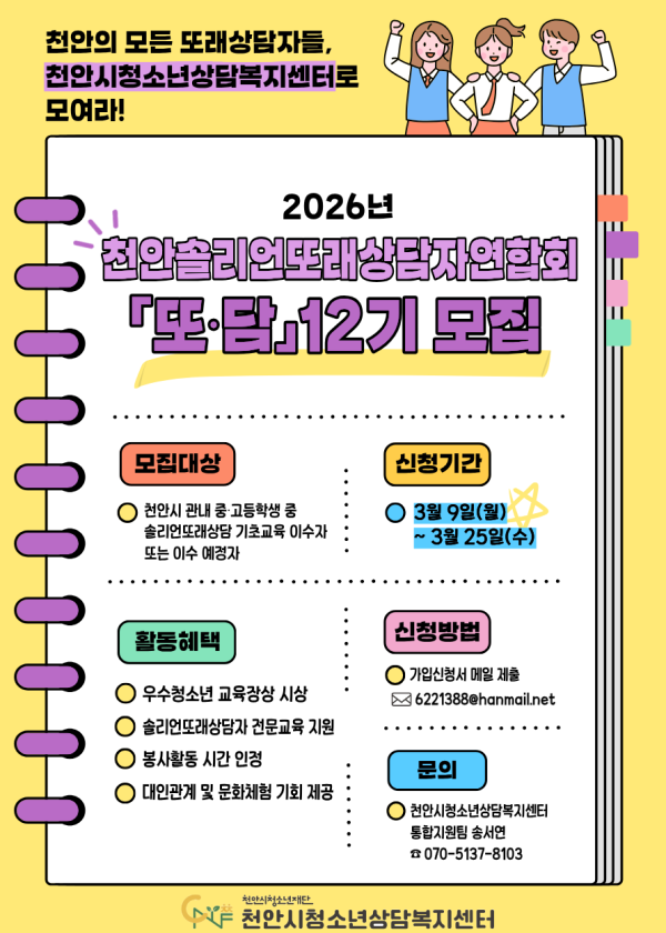 2026년 천안시청소년상담복지센터 동계 현장 실습생 모집 공고