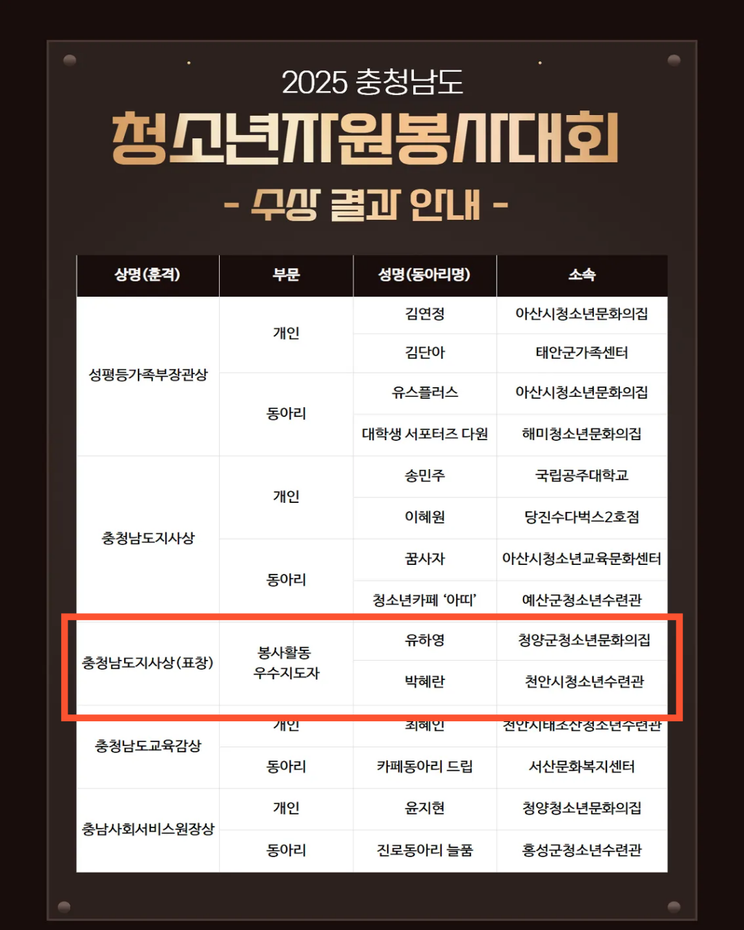 [2025 충청남도 청소년자원봉사대회 수상 소식]