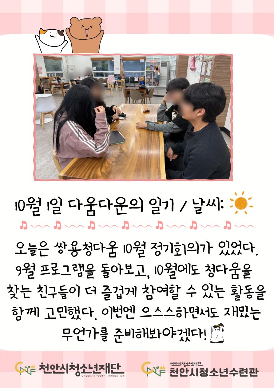 10월에도 청소년들이 즐겁게 참여할 수 있는