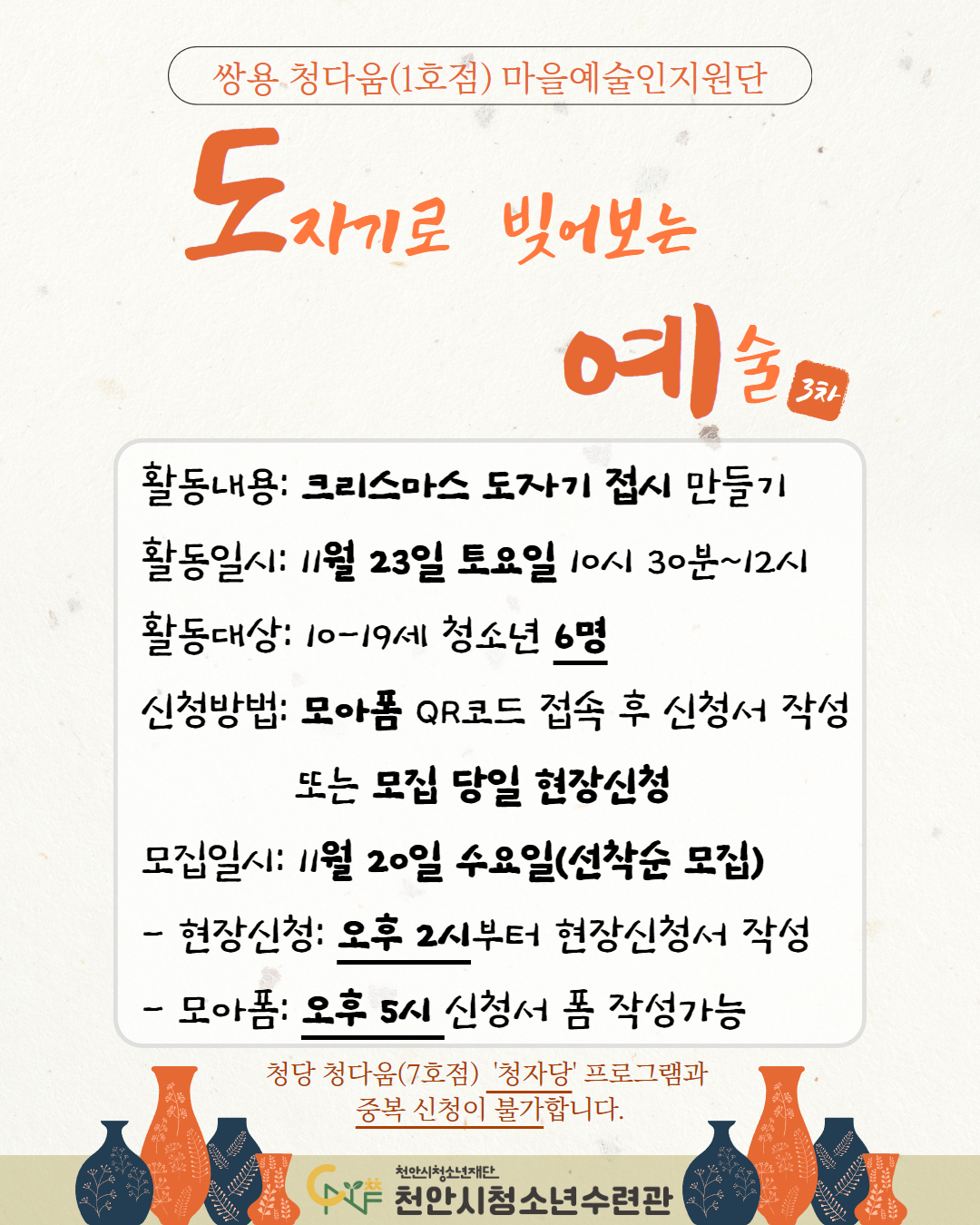 프로그램 쌍용 청다움(1호점) 마을예술인지원단 도예 3차 안내
