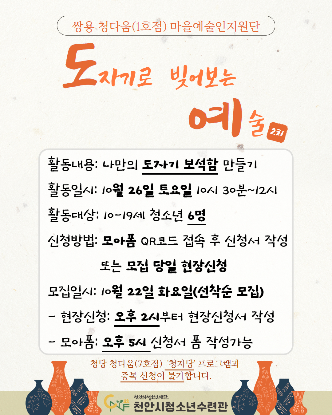 작성자 천안시청소년수련관 작성일 24-10-18 17:49 조회 1,250회본문
