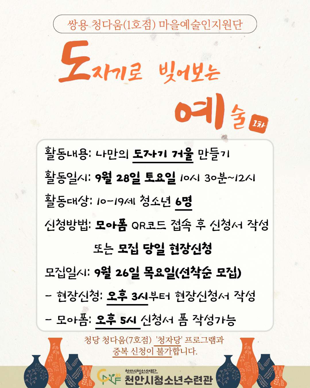 작성자 천안시청소년수련관 작성일 24-09-25 16:22 조회 1,495회본문