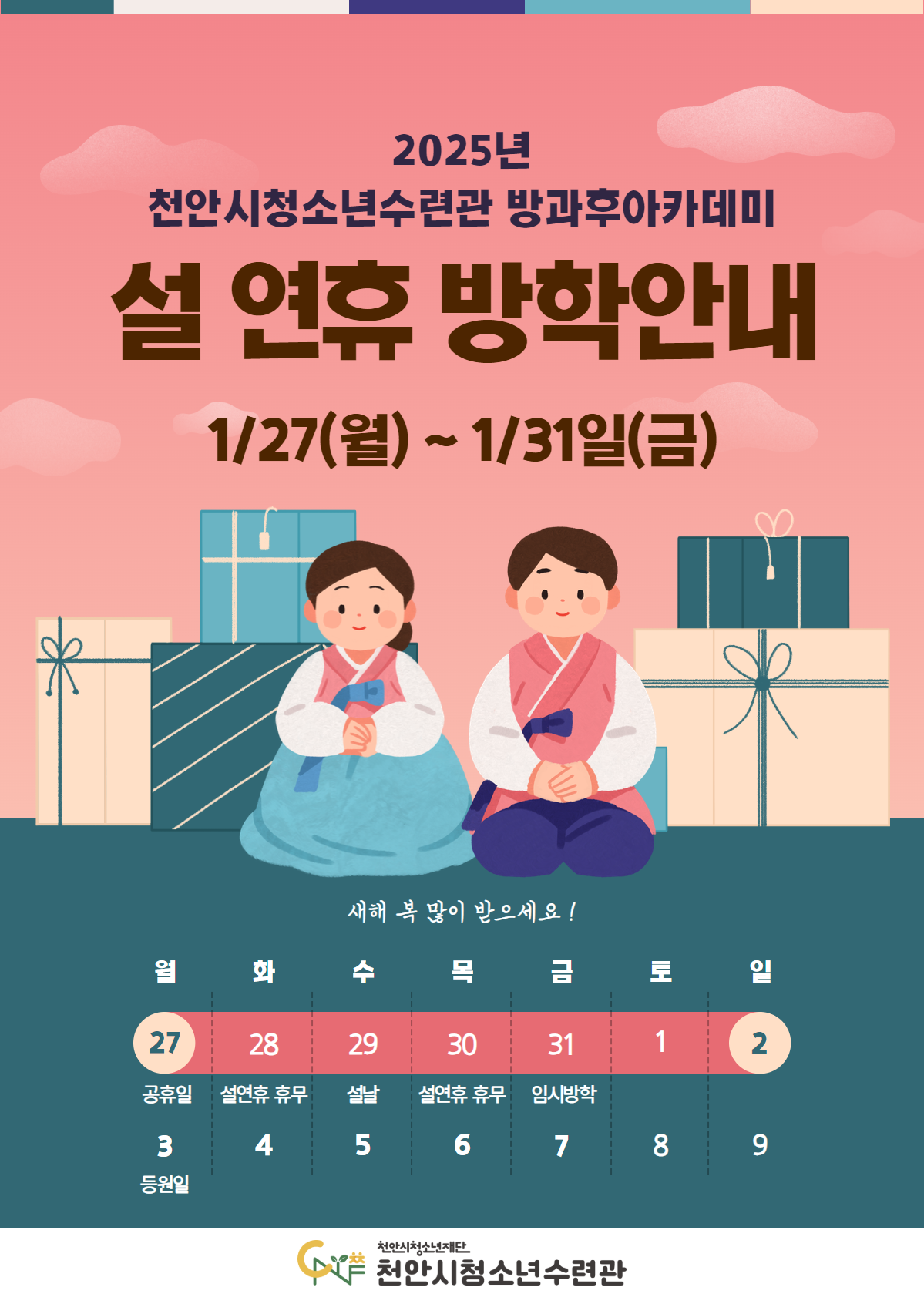 천안시청소년방과후아카데미 설연휴 방학 일정 안내